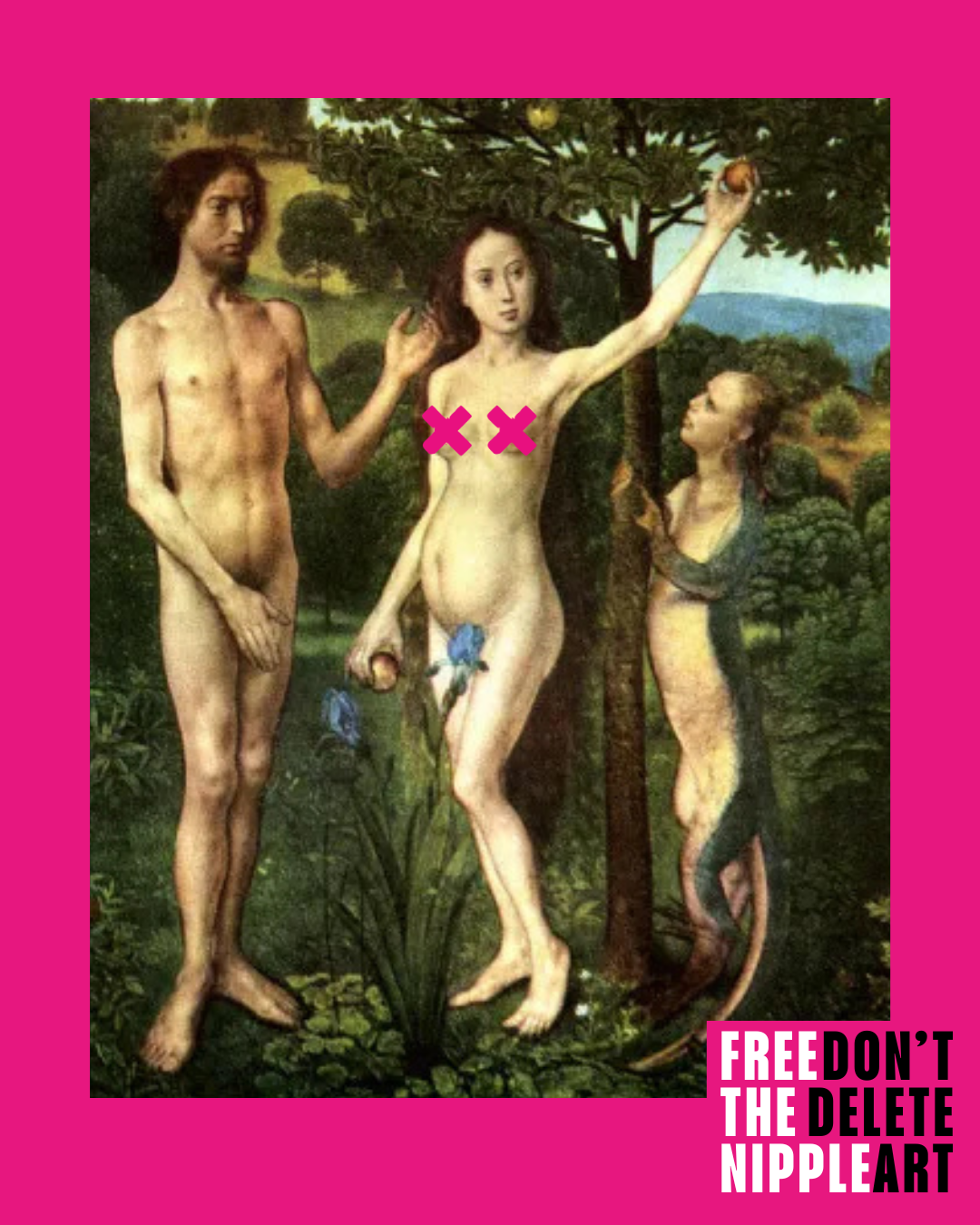Our multifaceted collaboration includes an Instagram takeover, live talks and panels with scholars and activists, and features artwork and quotes from artists whose work is vulnerable under current content moderation policies and enforcement. Alongside these voices, the initiative invites artists and the public to document examples and effects of art removed because of the inclusion of nipples, building a collective record of how censorship shapes art in the digital age.